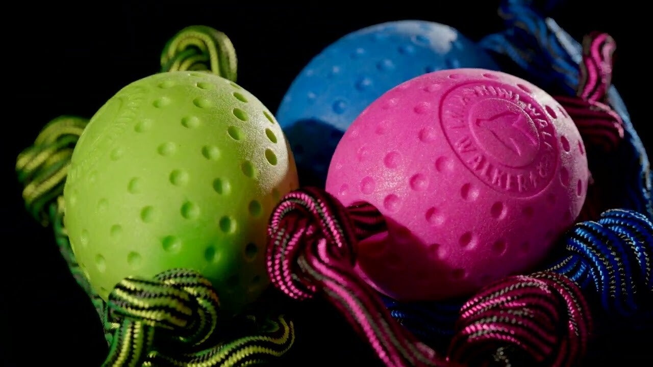 Jouet en mousse durable et résistante, flotte sur l'eau et rebondit. Avec corde résistante en nylon pour lancer loin et facilement.