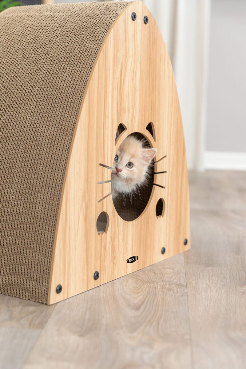 Maison grattoir, MDF, 48×48×28cm, brun clair